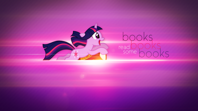 No Rarity wallpapers this time, so for your header I present to you Twilight Sparkle riding a book through a sea of text and lens flare. Right into the page break! Which you should click, because it makes Twilight happy. Don't you want to make Twilight happy? You monster.