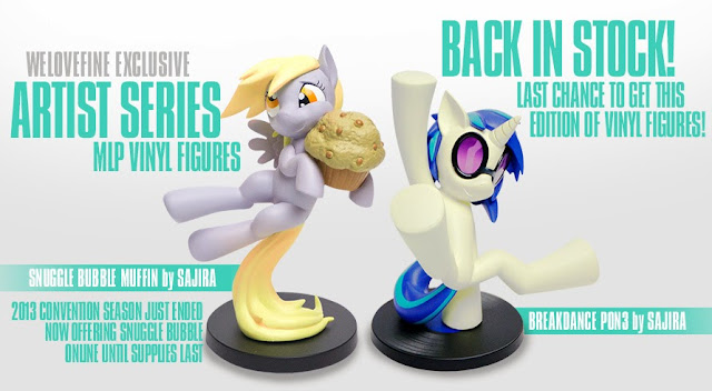 Pon3 and "Snuggle Bubble Muffin" are up for grabs over at We Love Fine. This is technically the first time Derpy has been available online, And Vinyl Scratch is usually out of stock. If you want one, follow the instructions over here to grab one. -