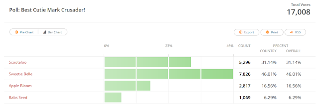 I remember wayy back a few years ago when Scootaloo won this poll. We also only had a couple thousand voters. I'll admit, I'm in the Belle park too. She really is the best CMC.