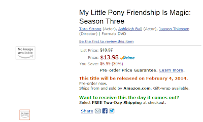 Earlier today, a pre-order page for the 3rd season of Friendship is Magic on DVD was tossed up on Amazon. We now have a bit more information on it from a press release sent out by Shout Factory. Have some of that, bullet style: