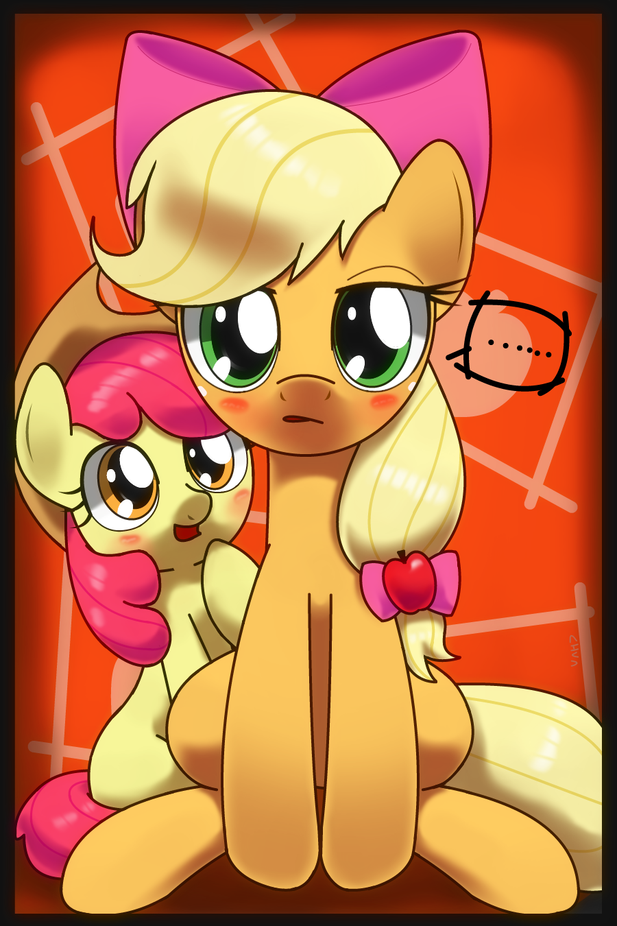 Aww, come on AJ, you actually look pretty dang cute in a bow! Just take a little after Rarity and make it your own.
