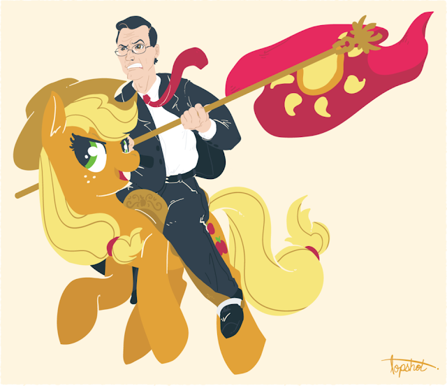Ponies are back in the media again! Stephen Colbert during his monologue recently mentioned our favorite ponies in reference to a bit of politics. It's short but it's nice to Colbert mentioning ponies once again.