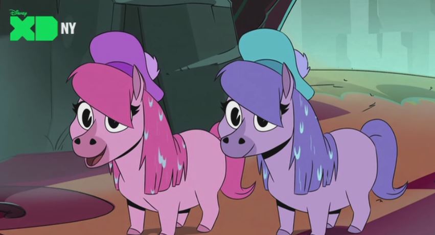 The new DuckTales series launched in 2017, and their most recent episode decided to throw a pony bone out there. They are even voiced by Tara Strong and Andrea Libman. They don't have butt symbols or really any relation to MLP script wise, but the voice actors and colors make it pretty obvious.