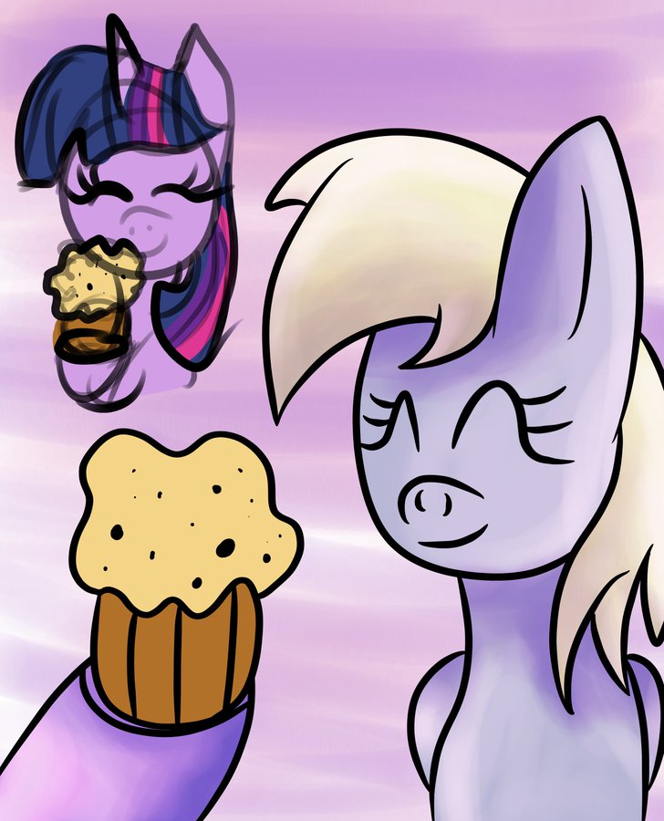 Ebony had noticed that Derpy had been feeling a bit sad as of late, so over the next few days she worked on a little surprise for her friend. About a few days later, she waited for Derpy to bring her mail as she usually did, soon joining her on the front yard, surprising her with an art piece she had made of the two of them together. Derpy was so moved by the unicorn's gesture that she gave her friend the biggest hug she could give her. She couldn't wait to hang her new present up once she got home!