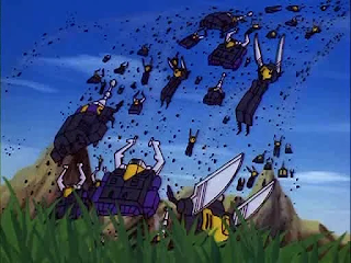 One might assume that the swarm vs farm motif is the main idea behind this clash, but I'd like to propose another aspect. The Insecticons have always been rogue elements, even amongst their fellow Decepticons. They're driven by pure instinct, and yet no matter how much they crossed Megatron they would return to the fold because even the idea of being a Decepticon is engraned into their impulses. As such, the Insecticons are a very unaware group. They act only on instinct.