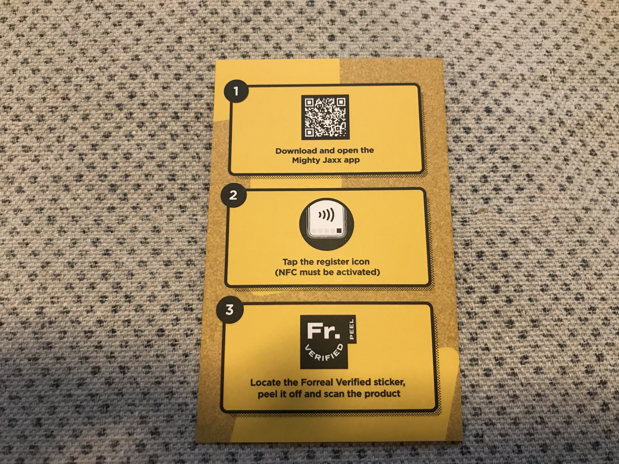…outlines how the NFC chip functionality of the display base. With step 1 being download the Mighty Jaxx app from the google play/itunes app stores.