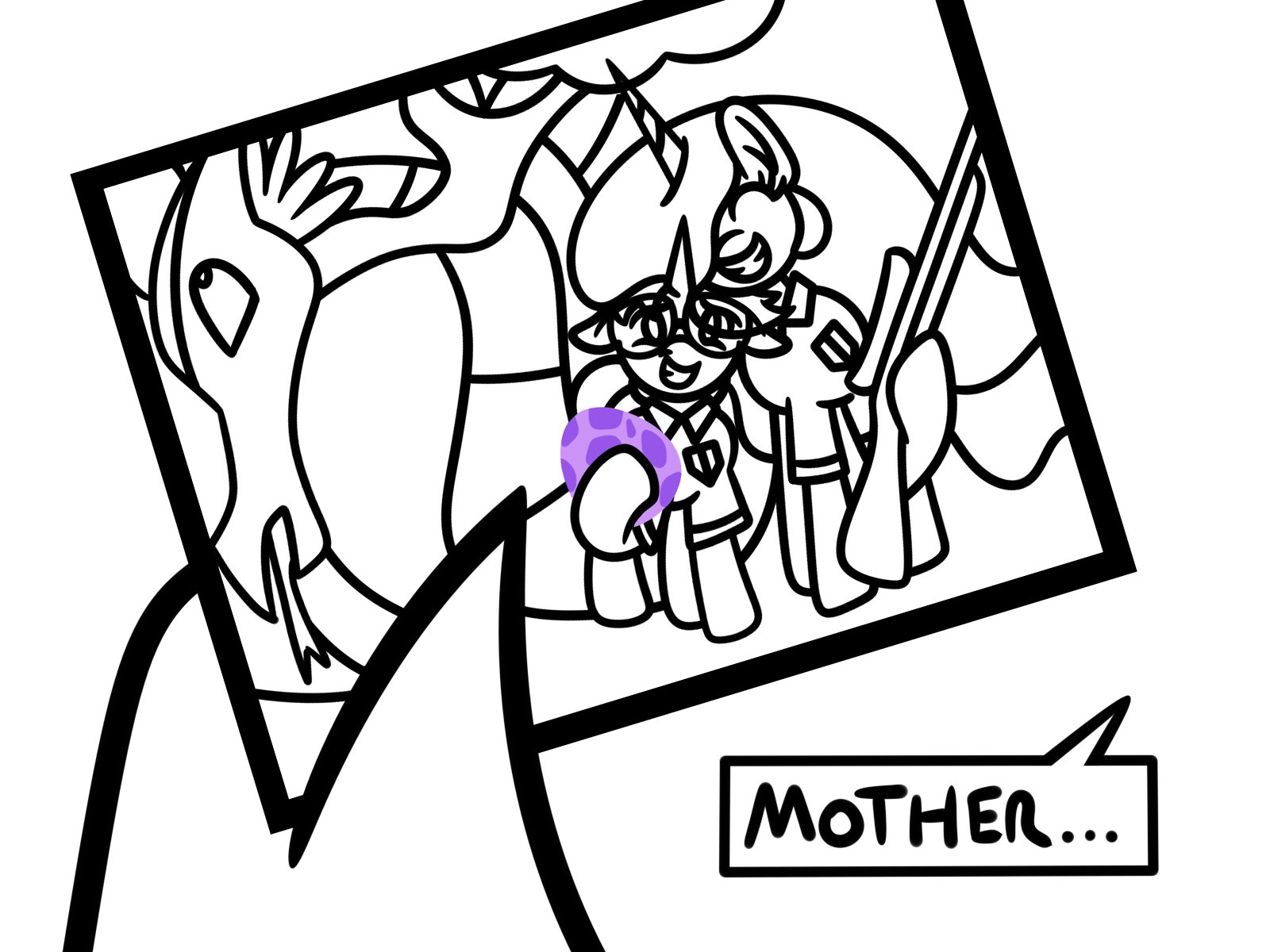This is my response to prompt 4, "Pony hiding something", which I re-interpreted into "Pony with a secret", depicting my OTP, Princess Twilight Sparkle and Sunset Shimmer. If you're wondering why this pairing is depicted as response to "Pony with a secret", I'll point you towards my two previous ATG runs (2018 and 2020) which dealt considerably with this topic and the Metoverse "story" regarding these two.
