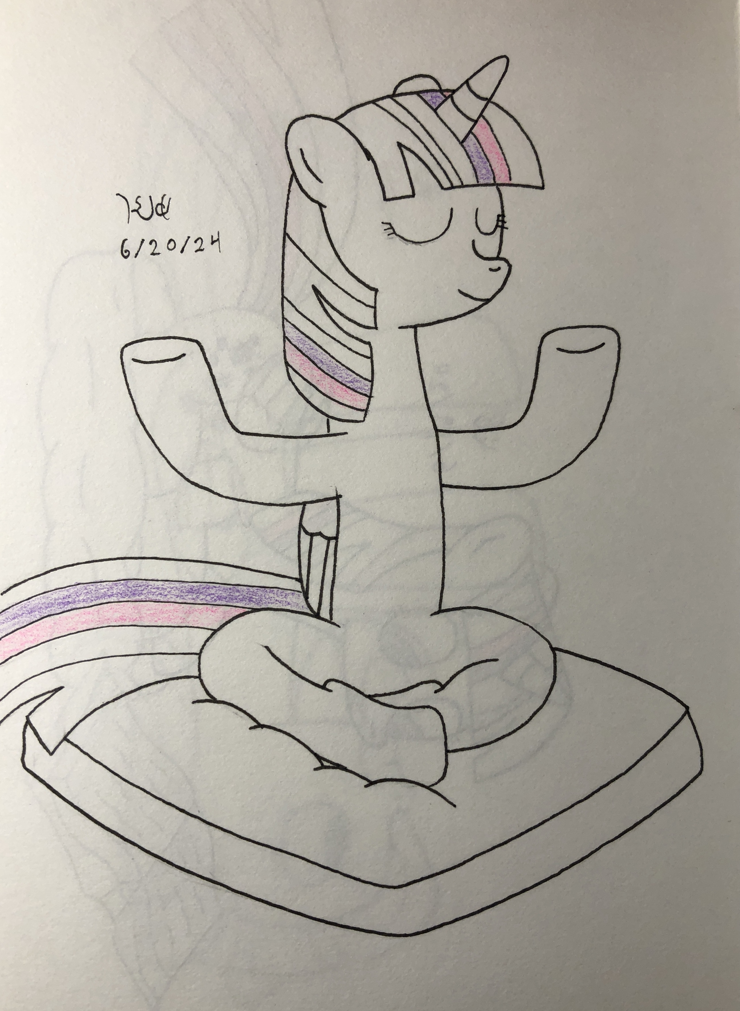 I'm going to Yoga once every week and we start with a meditation session everytime. It's great to relax your mind and not have your thoughts all over the place. Caveman Pony is on his journey to a calm mind aswell :3 On the other hand some ponies, like Swift Sword, just need to get it all out :) The cross legged pose was a bit problematic; there arent many references in the show.