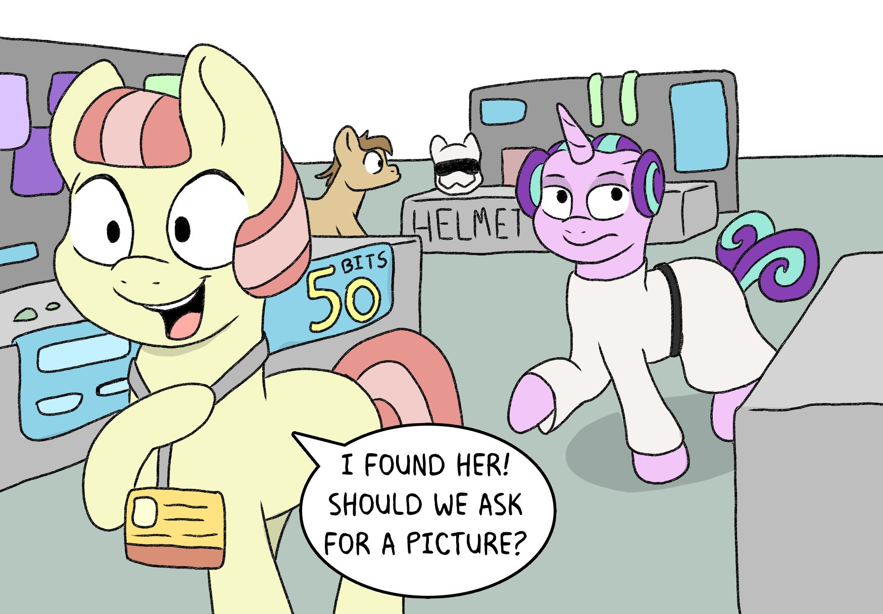 She found him! Starlight actually managed to get a portal to the right timeframe \o/ We can get Caveman Pony back to our time... or back to the future. I'm sure that Starlight can make sure and finds a spell, so something like this won't happen again, now that she knows what eventually could happen when you mess with time. This, for me, was the perfect prompt for this 3 day adventure of timetravel and it's consequnces. Order: NATG XIV: Day 20: I don't want to go NATG XIV: Day 22: End of the story NATG XIV: Day 22: A (Starlight) Glimmer of hope (you are here) NATG XIV: Day 21: I stay here! \o/