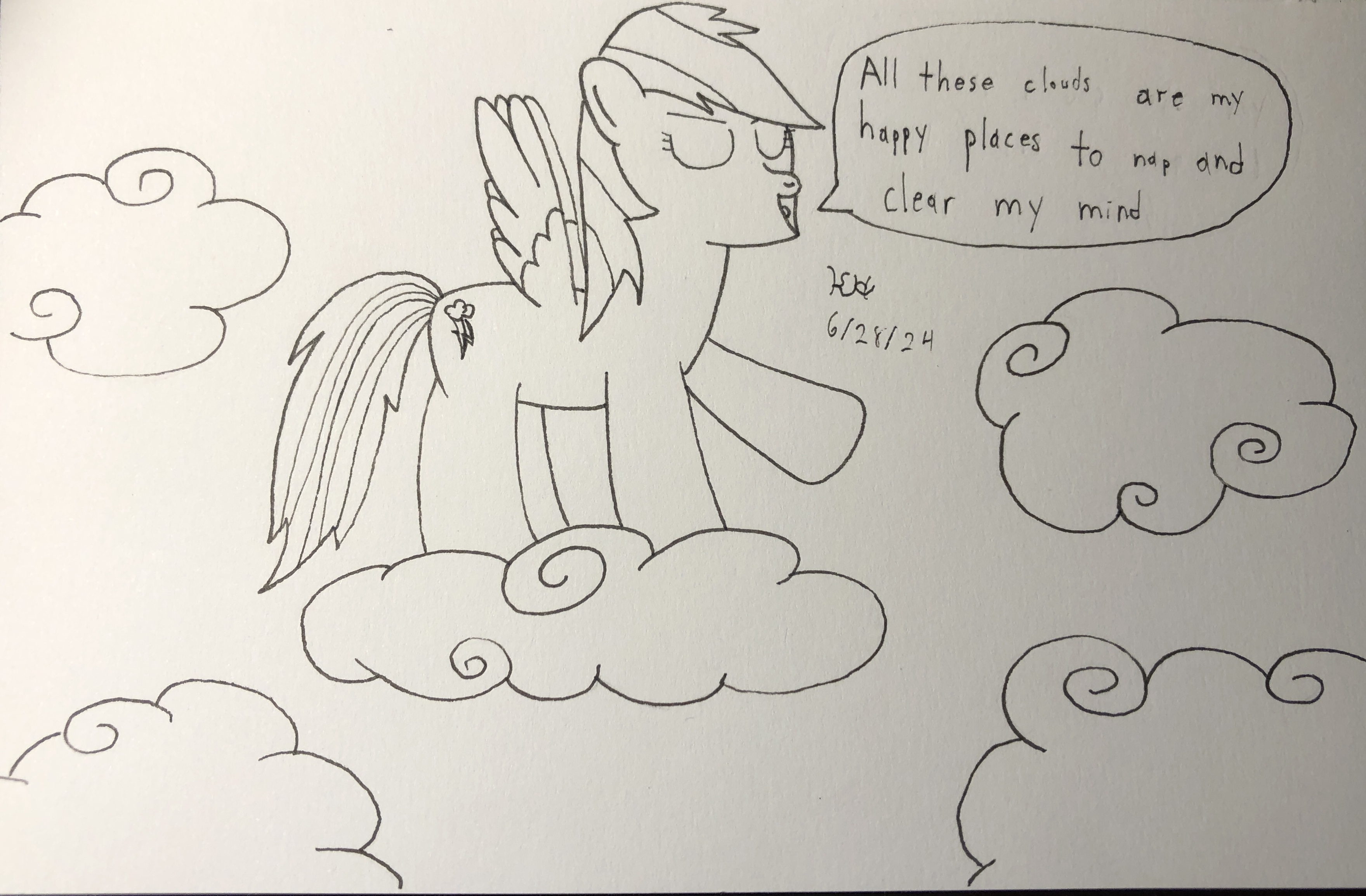 Previous Prompt: Draw a pony finding their happy place / Draw a pony clearing their mind