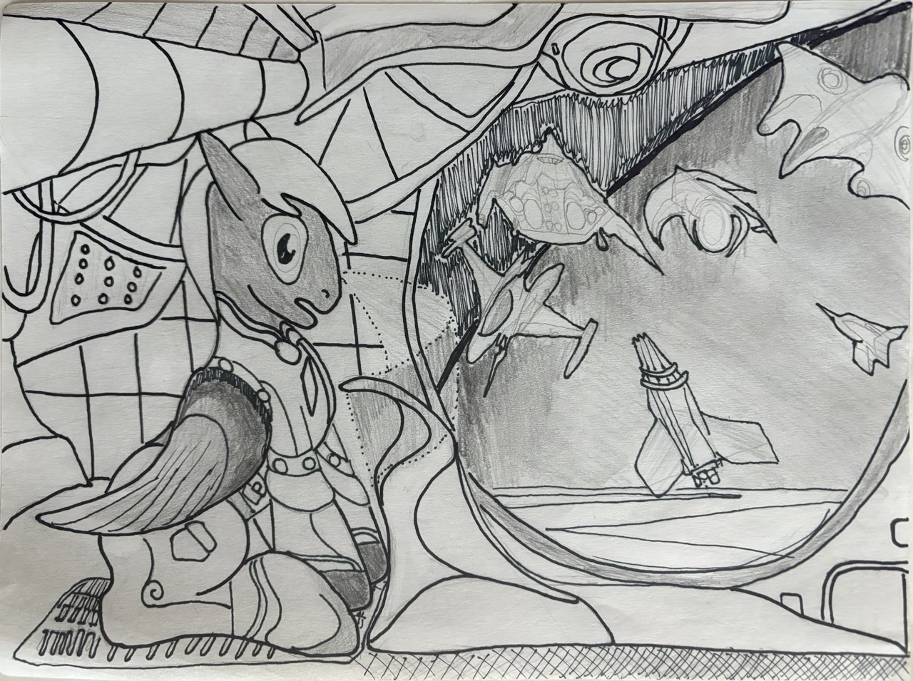 We are also teaming up with Calpain over on Bluesky who will be hosting thirty prompts on their end. Today's Prompt: Draw a pony bouncing back / Draw a pony making a comeback