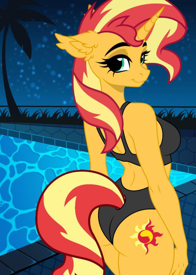 Anthro Sunset Shimmer enjoys a night swim by Star-Armour95 on Deviantart